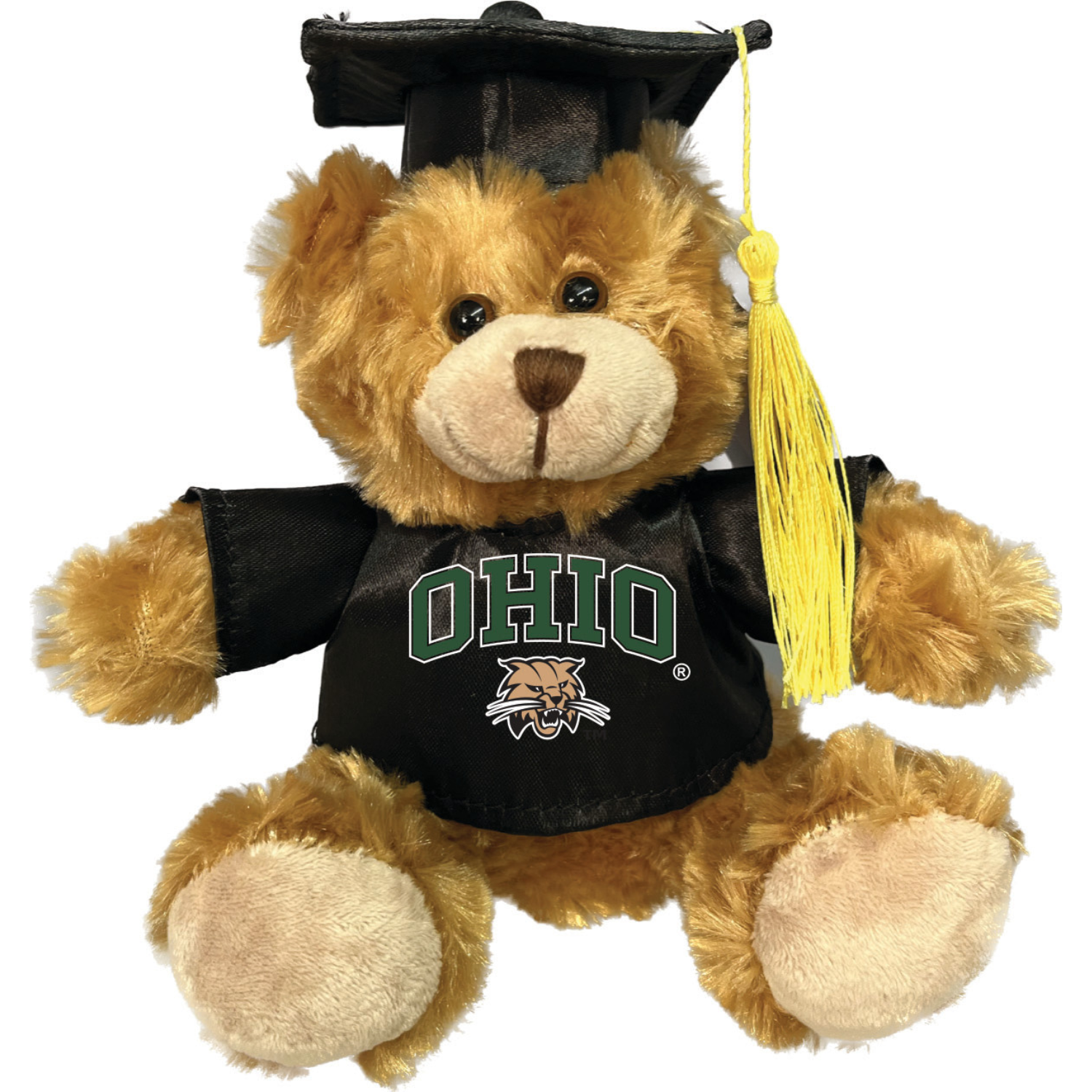 Go Bobcats! This Ohio University graduation bear is perfect for your favorite grad! This Ohio plush bear features a soft brown body wearing a cap and gown with a green/tan Ohio logo on it that will really make your Bobcat spirit shine through! This is an officially licensed collegiate product.