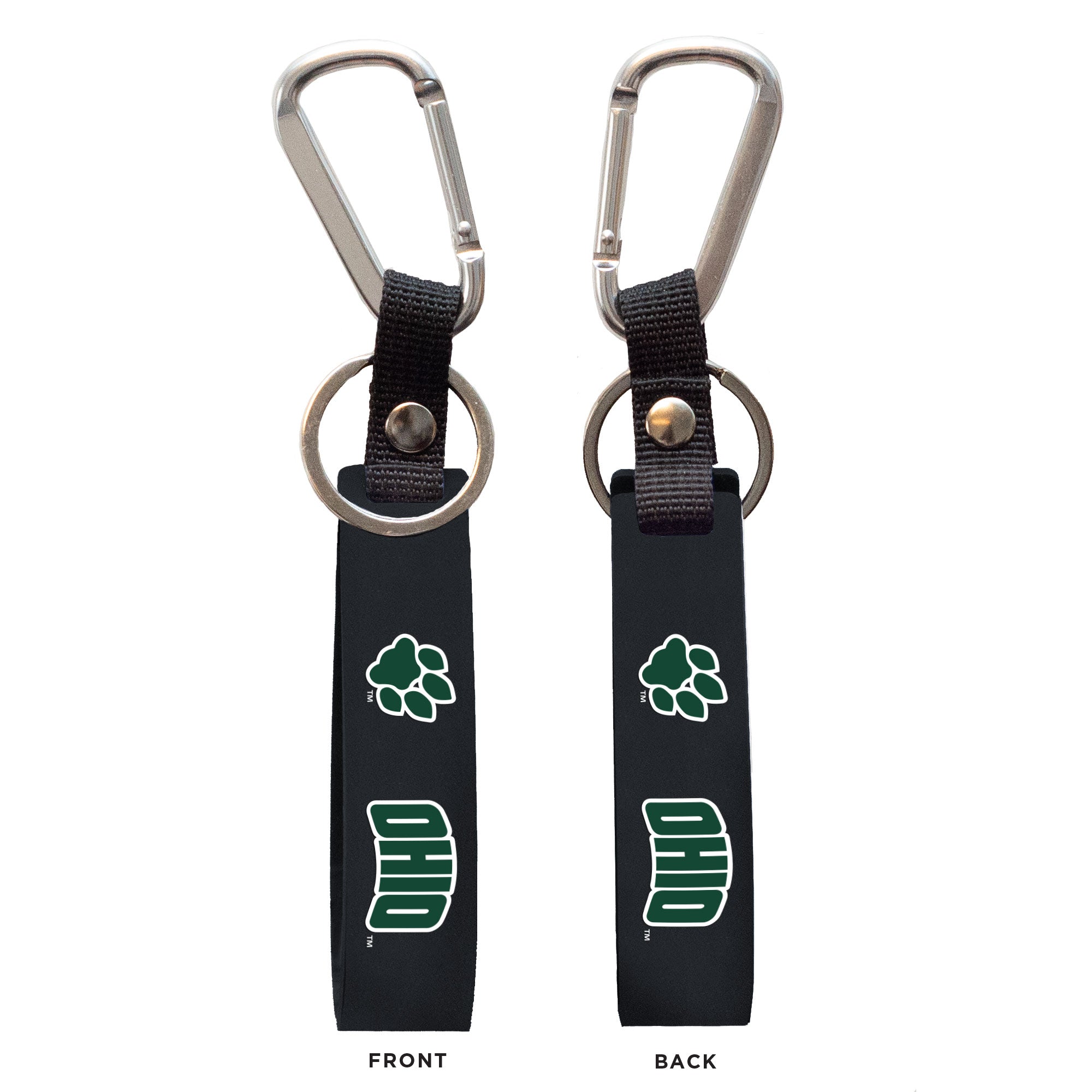 Go Bobcats! This Ohio keychain is perfect for taking your keys on the go! This keychain features a black silicone body with green/white Ohio and paw print logos that will really make your Ohio spirit shine through! Shop the Official Fanstore of the Ohio Bobcats for Bobcat merchandise! This is an officially licensed collegiate product.